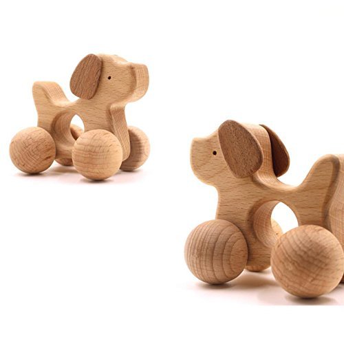 Mamimami Home クラシカル 動物の車 木製玩具 赤ちゃん 子供 新生児 誕生日プレゼント 1-2-3-4-5歳 ガラガラ 「ワンちゃん」