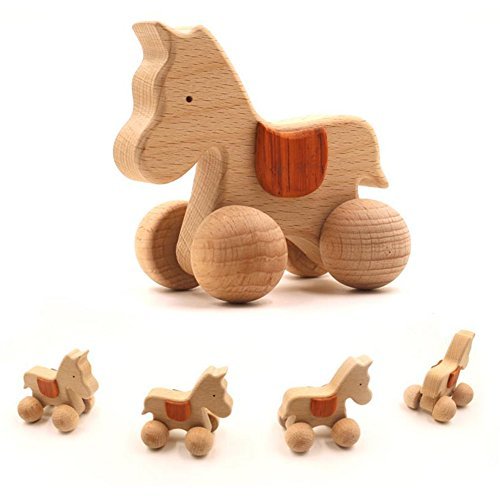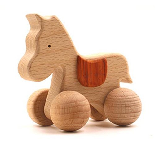 Mamimami Home クラシカル 動物の車 木製玩具 赤ちゃん 子供 新生児 誕生日プレゼント 1-2-3-4-5歳 ガラガラ 「馬」