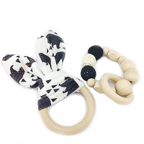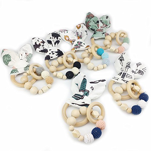 Mamimami Home ベビーカー用おもちゃ 噛がため おしゃぶり 木製 かぎ針編み の ブレスレット 声が出て 兎耳 1ゼント「BPAフリー」[FDA認可済]