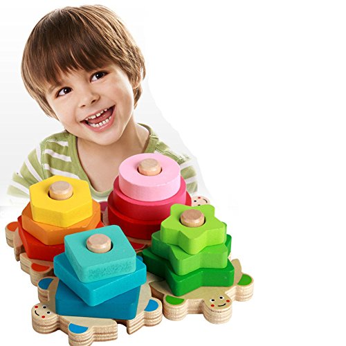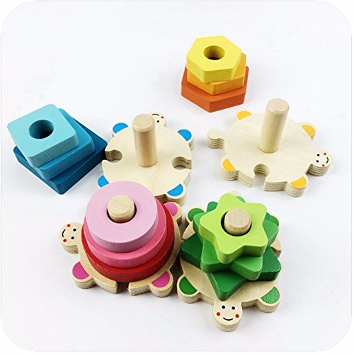 Mamimami Home 積み木 天然木製 タートル 知育玩具 幾何認知 男の子 女の子 4色/ゼント