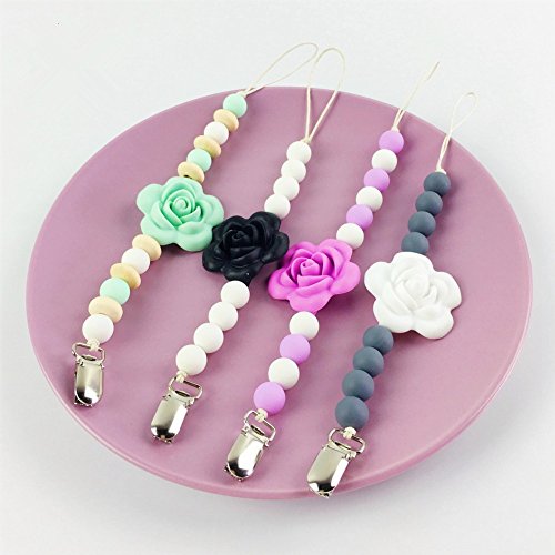 おしゃぶりクリップ 授乳ジュエリー?ママがつけるお子様用歯固めペンダント シリコン製?フラワー /ローズ チュアブルビーズ[BPAフリー][FDA認可済]ベビー 知育玩具(乳歯セット 2)4件