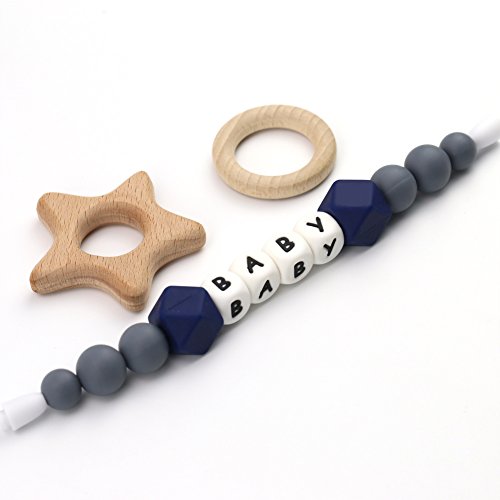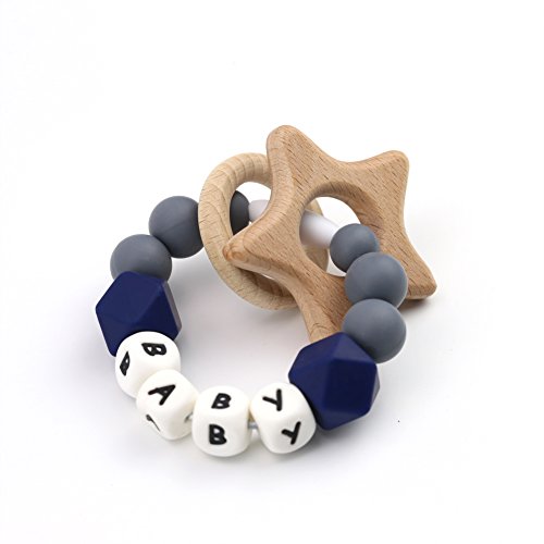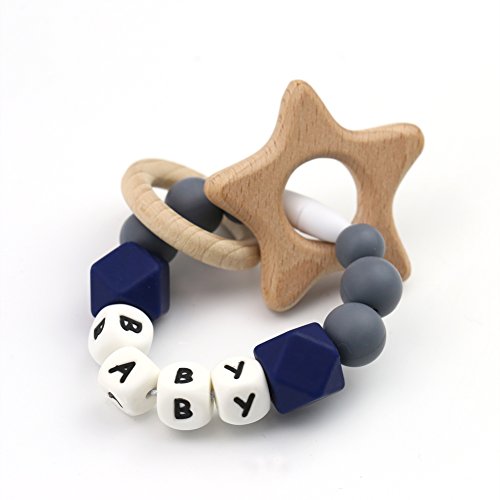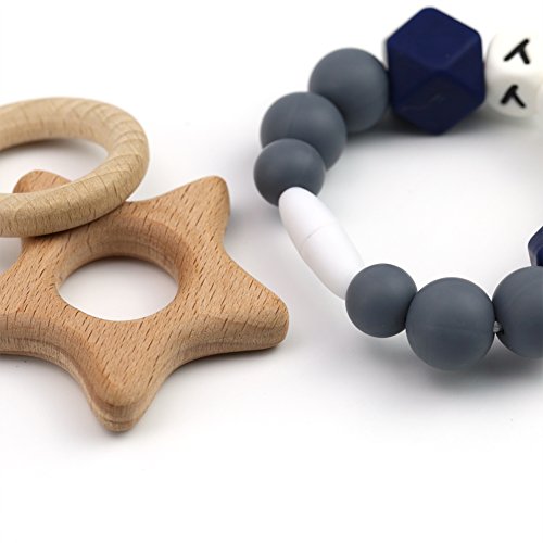 Mamimami Home 木育 授乳ジュエリー 歯がため ラトル 赤ちゃんのおもちゃ 歯固め とり チュアブル ブレスレット クラスプ シリコン レタービーズ[BPAフリー][FDA認可済]木製 安全 無味 ピンク パープル