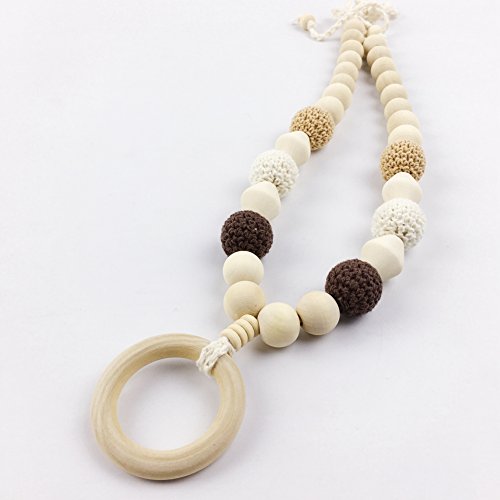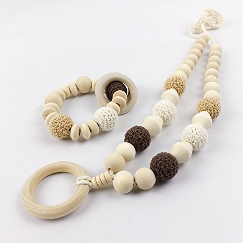 ママ授乳ネックレス 歯固めジュエリー?赤ちゃんのおもちゃ?歯がため 握りやすい 木製 ブレスレット チュアブル リング/ラトル 感覚おしゃぶり[BPAフリー][FDA認可済]木育 安全 無味 2枚セット
