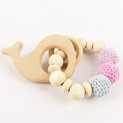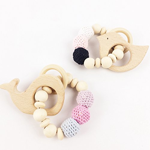 木製?歯固め ジュエリー オーガニック ブレスレット ホエール/とり型 ママ授乳 ベビー ラトル チュアブル 赤ちゃんのおもちゃ がらがら[BPAフリー][FDA認可済]木育 安全 無味 ホエール/鳥 2枚セット