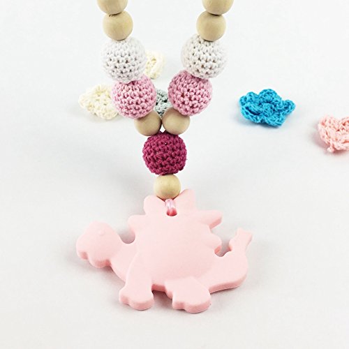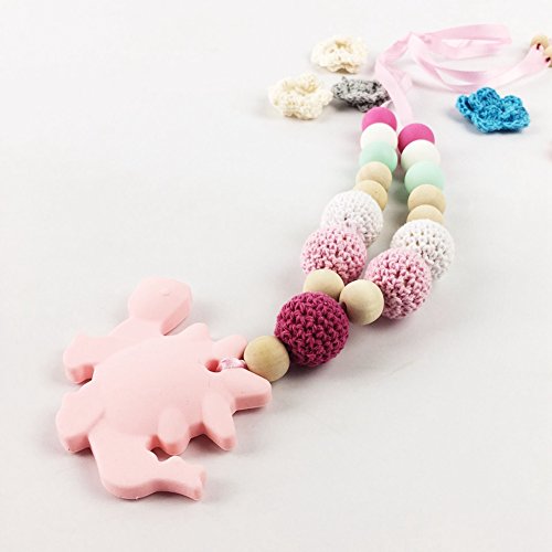 歯固め授乳ジュエリー シリコン ママのネックレス 歯がため赤ちゃんのおもちゃ[BPAフリー][FDA認可済]木育 安全 無味 ピンク 恐竜
