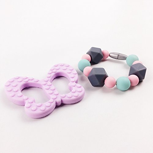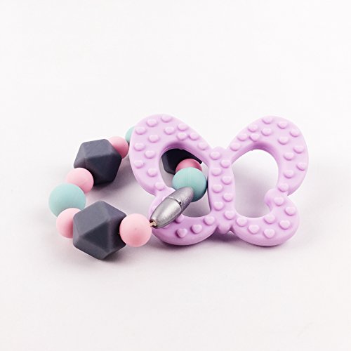 シリコン 歯固め ジュエリー 歯がため おしゃぶり 蝶型 赤ちゃんのおもちゃ?ママ授乳ブレスレット オーガニック ラトル[BPAフリー][FDA認可済]安全 無味 パープル