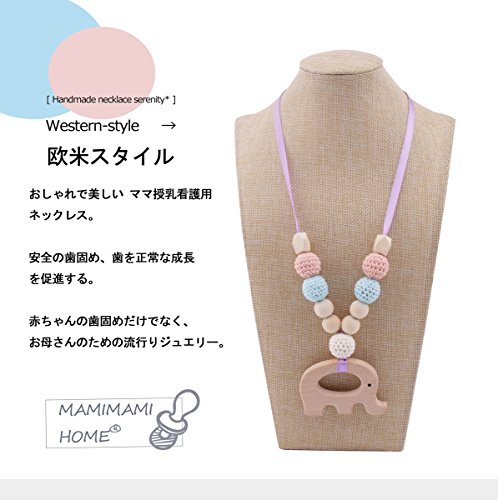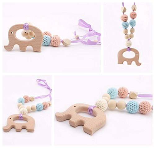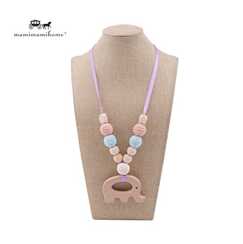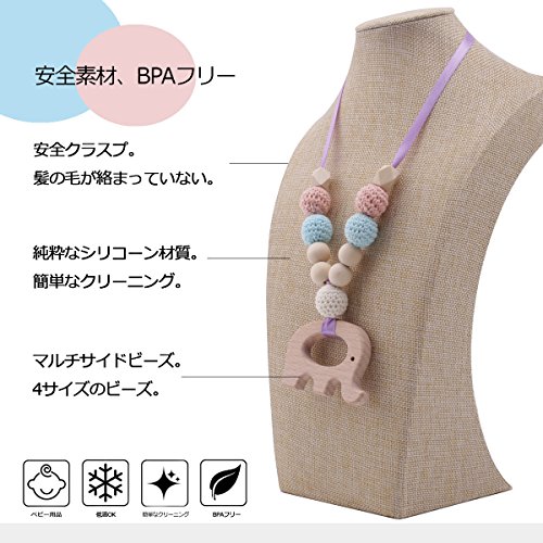 歯固め授乳ジュエリー ママのネックレス 歯がため 木製象 赤ちゃんのおもちゃ?[BPAフリー][FDA認可済]木育 安全 無味 ウッドカラー ピンク 紺碧(ブルー)