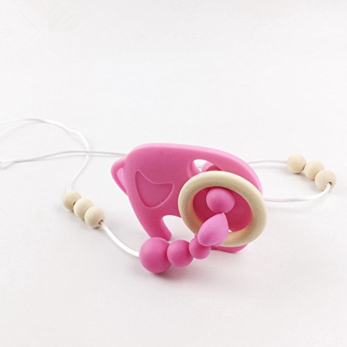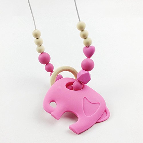 おしゃれで 歯固めネックレス 歯がため象 シリコン製ママ授乳ジュエリー?ベビーに安全なチュアブルおもちゃ[BPAフリー?][FDA認可済]ピンク