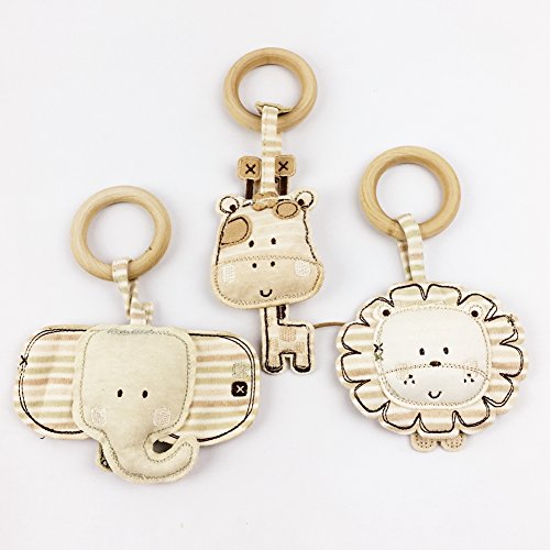木製 リング ママ授乳の時 赤ちゃんのおもちゃ ベビーベッドトイ 動物 マペット キリン/象/ライオンのはがため ベビー 知育玩具【木育 安全 無味】3枚セット