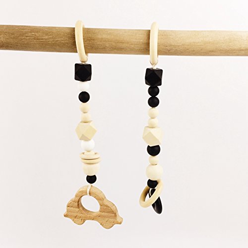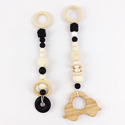 木育 歯固め授乳ジュエリー?シリコン 歯がためリング/カー おしゃぶり 美しい ママ授乳ペンダント 赤ちゃんのおもちゃ[BPAフリー][FDA認可済]木製? 安全 無味 ブラック 2枚セット