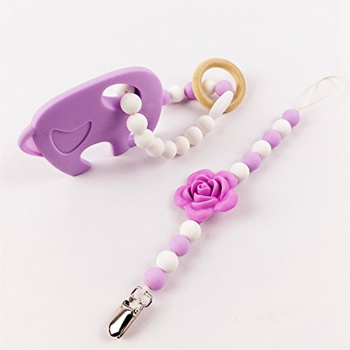 おしゃぶりクリップ 授乳ジュエリー?ママがつけるお子様用歯固めペンダント シリコン製?フラワー /ローズ チュアブルビーズ[BPAフリー][FDA認可済]ベビー 知育玩具(乳歯セット 1)2件