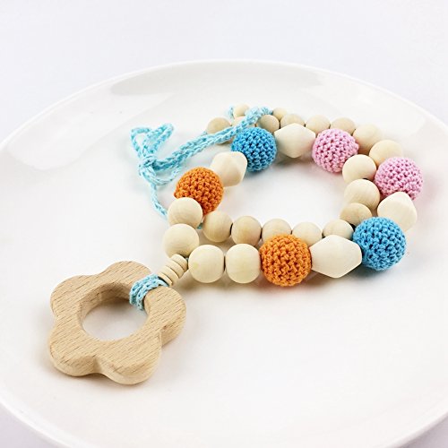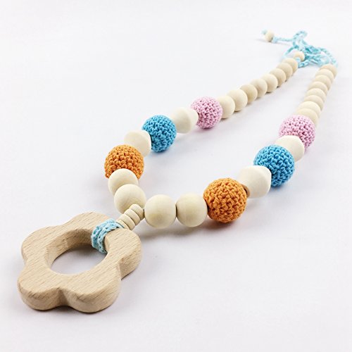 歯固めジュエリー?ママ授乳ネックレス 赤ちゃんのおもちゃ?歯がため 握りやすい 木製 リング チュアブル フラワー 感覚おしゃぶり[BPAフリー][FDA認可済]木育 安全 無味 オレンジ パープル ブルー