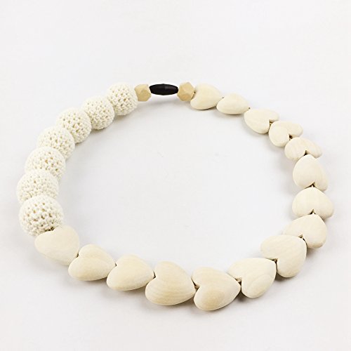 木育 歯固め ネックレス ママ授乳ジュエリー?天然木製?ハートビーズ 赤ちゃんのおもちゃ?美しい ママのネックレス [BPAフリー][FDA認可済]木育 安全 無味 ウッドカラー