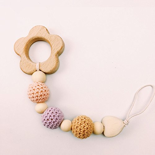 歯がため 赤ちゃんのおもちゃ 木製 フラワー 歯固めおしゃぶり 授乳ジュエリー オーガニックペンダント[BPAフリー][FDA認可済]木育 安全 無味 ピンク イエロー パープル