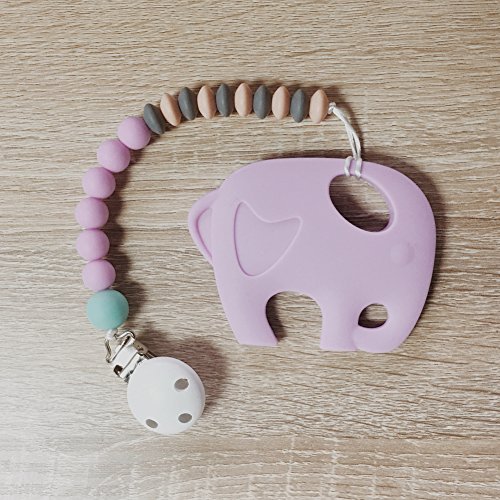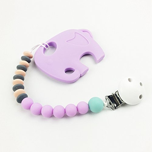 赤ちゃんのおしゃぶり シリコン 歯固めジュエリー 動物は歯がためおもちゃ ママ授乳ペンダント おしゃぶりクリップ アクセサリー[BPAフリー][FDA認可済]安全 無味 象 パープル