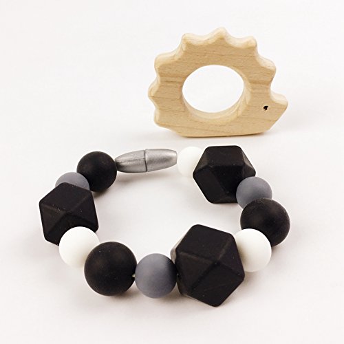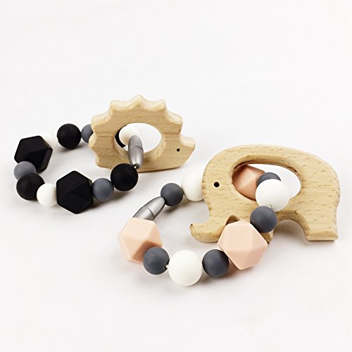 木育 歯がため ハリネズミ/象 ラトル シリコン ブレスレット 歯固め ママ授乳ジュエリー [BPAフリー][FDA認可済]木製 安全 無味 ハリネズミ/象 2枚セット