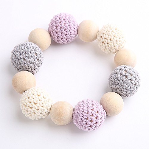 歯がためしゃぶり ママ授乳ジュエリー?歯がため ブレスレット 木製?赤ちゃんのおもちゃ?オーガニック コットン メイプルウッドリング[BPAフリー][FDA認可済]木育 安全 無味 ブルー パープル