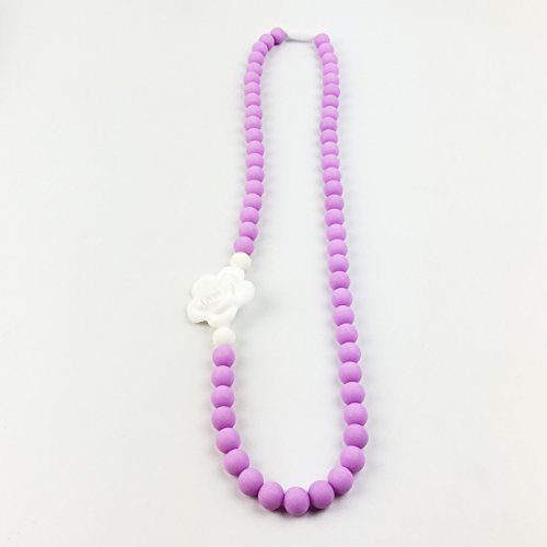 Mamimami Home 歯がため ママ授乳ネックレス 柔らかくて 軽いし シリコン フラワー/ローズ [3ヶ月以上] パープル ワイト