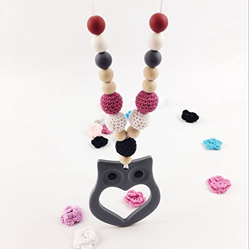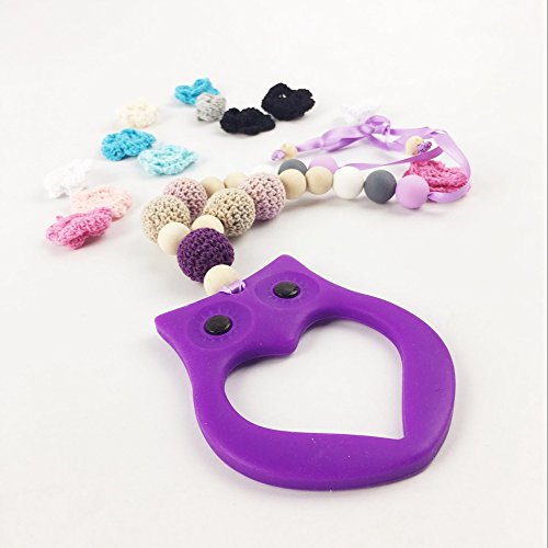 歯固め ジュエリー ママ授乳ネックレス シリコン製?ふくろう型 木製?ビーズ 赤ちゃんのおもちゃ ラーニングトイ[BPAフリー][FDA認可済]木育 安全 無味 グレー/パープル 2枚セット