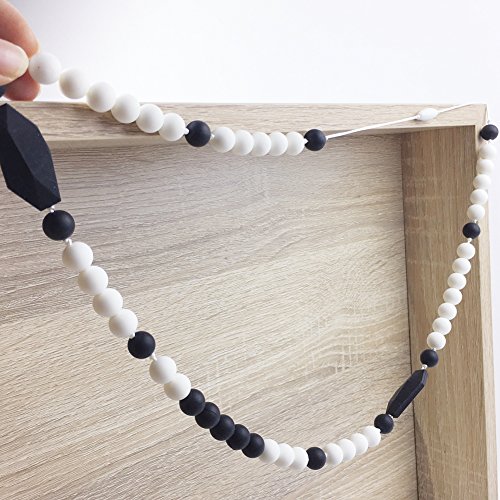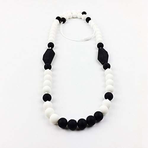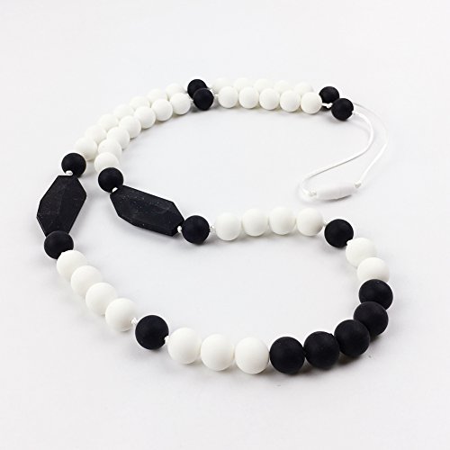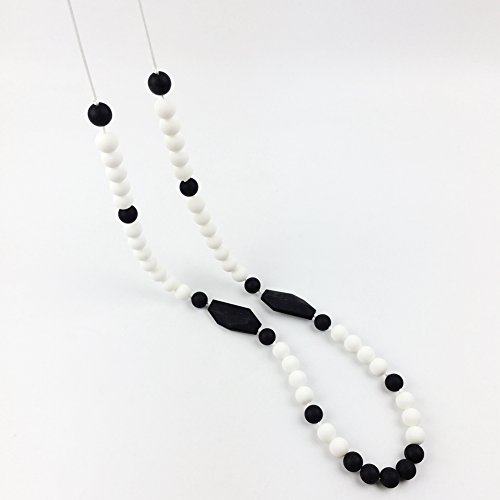 歯固め ネックレス シリコン ママ授乳ジュエリー 六角ビーズのはがため ママのネックレス チュアブルおしゃぶり 赤ちゃんのおもちゃ[BPAフリー][FDA認可済]安全 無味 ワイト ブラック