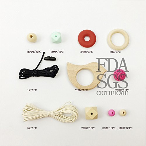 【DIY セット】授乳ジュエリー 歯固めおもちゃ アクセサリー 木製の動物+シリコン+ロープ「セット 1」