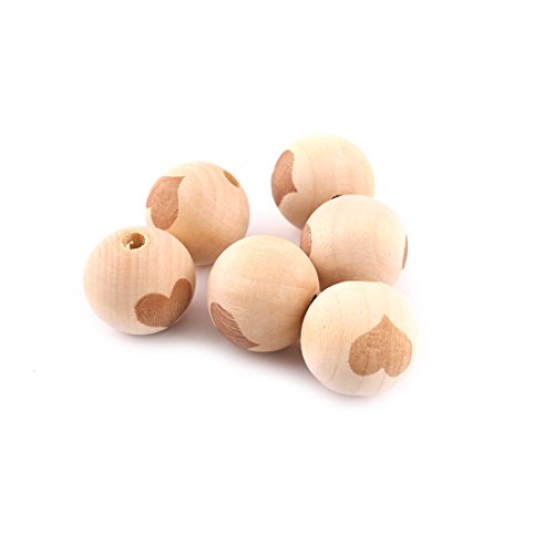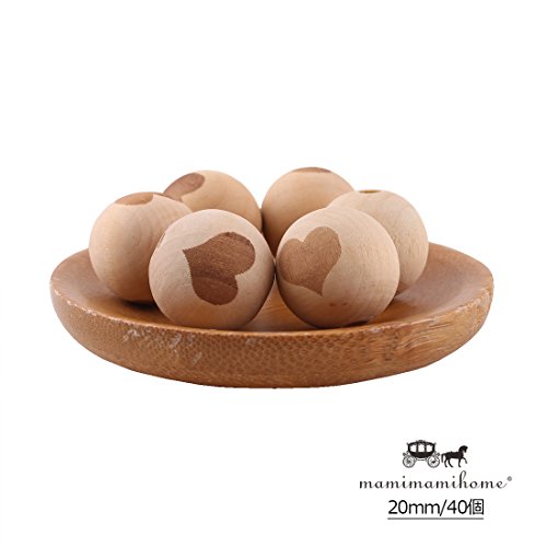 Mamimami Home 噛ても大丈夫 天然木製 ビーズ レーザー印刷 心 20mm 40個 おもちゃ おしゃぶり ママジュエリー DIY 噛がため「FDA認可済」「 BPAフリー」