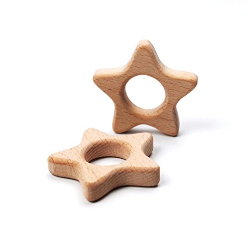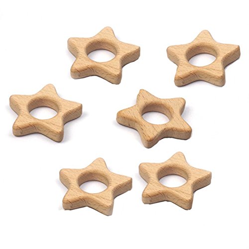 Mamimami Home 歯固め カミカミ 木の動物 10個 スター 五芒星 木製ペンダント 赤ちゃんのおもちゃ 知育玩具 安全 FDA認可済