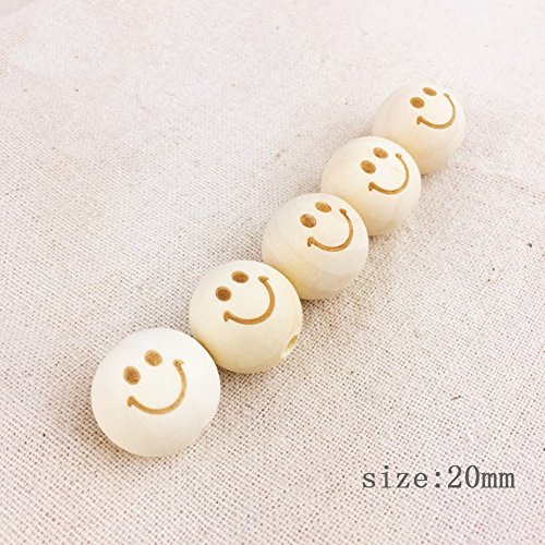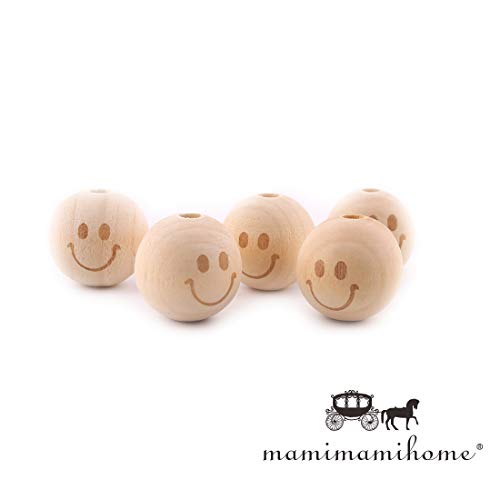 Mamimami Home 噛ても大丈夫 天然木製 ビーズ レーザー印刷 スマイル 20mm 40個 おもちゃ おしゃぶり ママジュエリー DIY 噛がため「FDA認可済」「 BPAフリー」