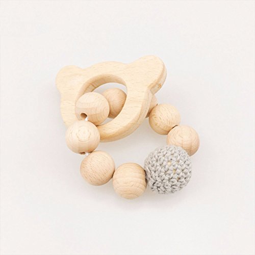 Mamimami Home 木育 歯固め おしゃぶり 木製ビーズ チュアブル キュート動物 ママ授乳用ブレスレット 赤ちゃんの噛むおもちゃ ガラガラ 食品グレード「クマ・1個」
