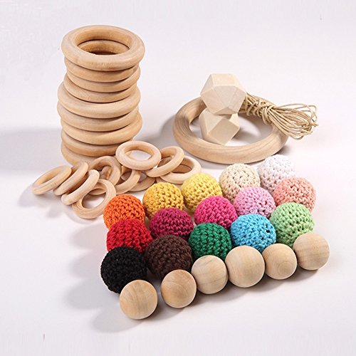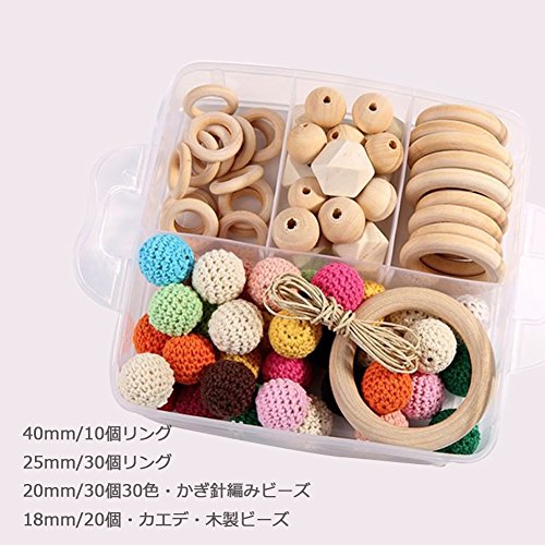 Mamimami Home 噛がため 赤ちゃんの玩具 幼児 歯固め ガラガラ diy用 材料パッケージ オーガニックコットン 天然木製ビーズ リング ママ授乳ジュエリー 作る [FDA認可済] 90個/1・ゼント