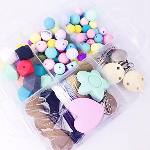 Mamimami Home 歯固め シリコーン製 おしゃぶりホルダー おしゃれ授乳ジュエリー DIY ビーズゼント 12-17mm 112個シリコンビーズ 1層 丸ビーズ ゼント 噛がため BPAフリー 「ボックス 付き」