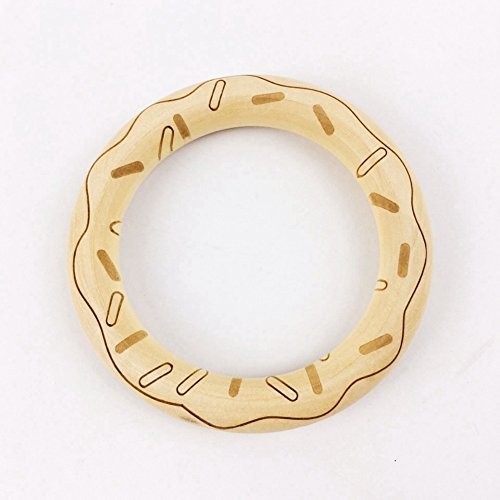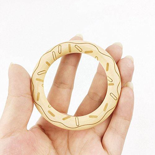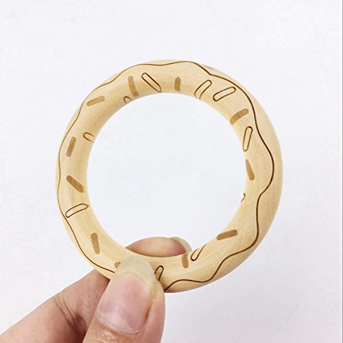Mamimami Home おしゃれで歯固め リング 天然木製 レーザー印刷 チュアブル ブレスレット DIY ガラガラ 噛がため おもちゃ 70mm 5個 「ドーナツ」
