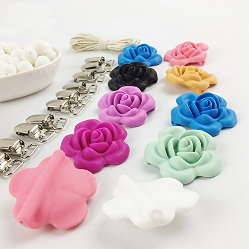 Mamimami Home 歯固め シリコーン製 ローズセット 噛のビーズ 210個/ゼント 材料パッケージ 歯固め ネックレス おしゃぶりホルダー ガラガラ DIYゼント BPAフリー