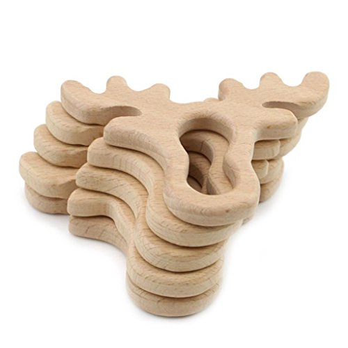 Mamimami Home 歯固め 授乳玩具 天然木製 ヘラジカ チュアブル 幼児 知育玩具 10個(おしゃぶりと一緒に使うことができます)