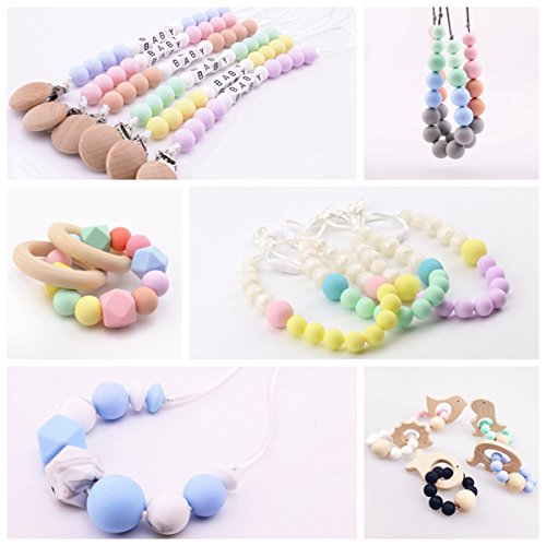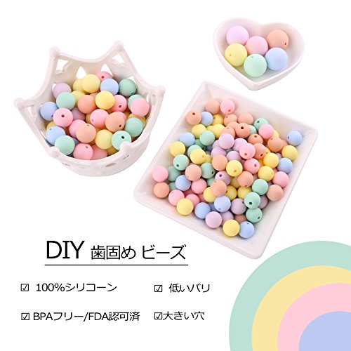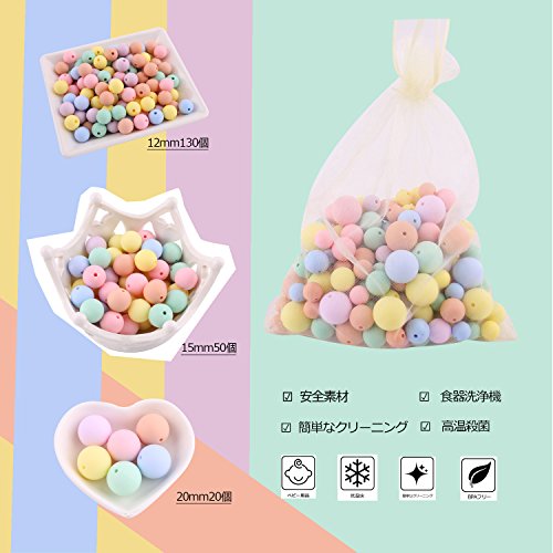 Mamimami Home 歯固め シリコーン製 ビーズ 12-15 - 20 mm キャンディー色 200個 噛がため 丸ビーズ ネックレス おしゃぶりホルダー DIY 材料パッケージ [糸の袋]