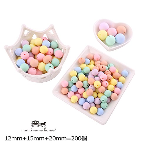 Mamimami Home 歯固め シリコーン製 ビーズ 12-15 - 20 mm キャンディー色 200個 噛がため 丸ビーズ ネックレス おしゃぶりホルダー DIY 材料パッケージ [プラスチックボトル]