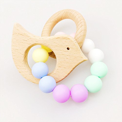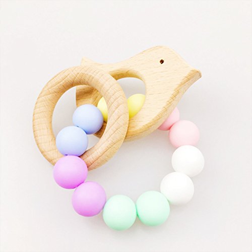 Mamimami Home 授乳ジュエリー 歯固め ブレスレット ベビー ラトル ママ看護用 食品グレード シリコーンビーズ 木製リング 浅色