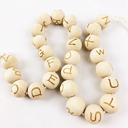 Mamimami Home 天然木製 ビーズ 噛がため 赤ちゃんの木のおもちゃ 26個アルファベット 噛ても大丈夫 就学前教育 知育玩具 diy 看護ジュエリー 20mm 26個