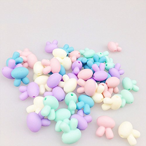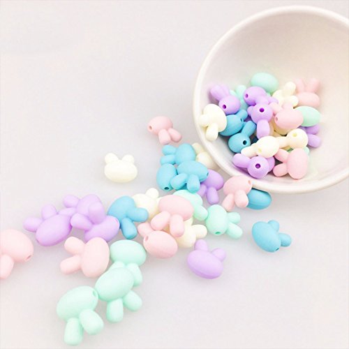 Mamimami Home 授乳用 シリコーン ビーズ 20個/5色 1.5x1.8cm 噛がため ウサギ ビーズ DIY 歯固め 幼児 ブレスレット カミカミ玩具 混合色 「付き diy ロープ」FDA認可済