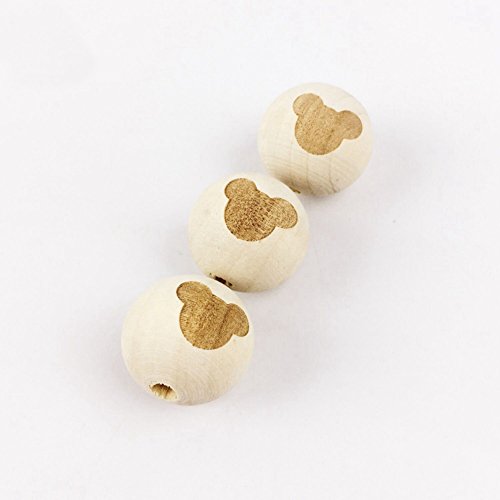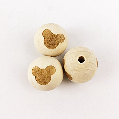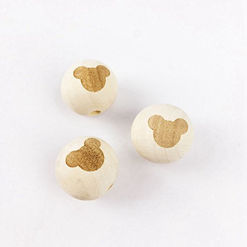 Mamimami Home 噛ても大丈夫 天然木製 ビーズ おもちゃ おしゃぶり ママジュエリー DIY 噛がため レーザー印刷 マウス 20mm 40個