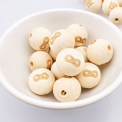 Mamimami Home 噛がため 木製ビーズ 天然 安全 レーザー印刷 ビーズ diy 知育玩具 木のおもちゃ おしゃぶりホルダー 20mm 40個 メガネ