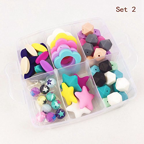 Mamimami Home 歯固め シリコーン製 ビーズ 12mm-37mm 64個 様々な形状 丸ビーズ 歯固め 授乳用ジュエリー おしゃぶり 噛のおもちゃ DIY 材料パッケージ 「ボックス 付き」BPAフリー