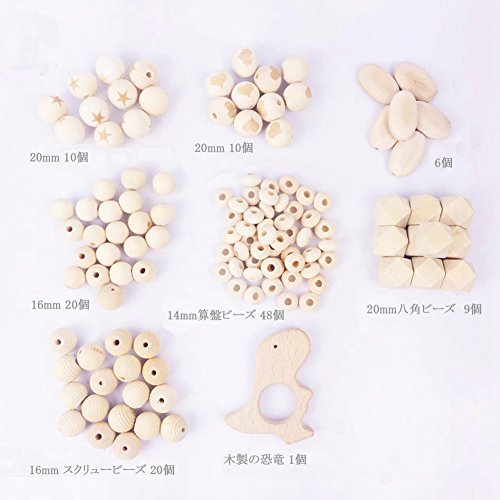 Mamimami Home 歯固め シリコーン製 おしゃぶりホルダー おしゃれ授乳ジュエリー DIY ビーズゼント 14mm-20mm 123個木製ビーズ+1個木製の恐竜 1層 丸ビーズ ゼント 噛がため BPAフリー 「ボックス 付き」