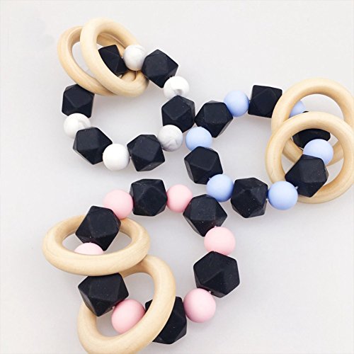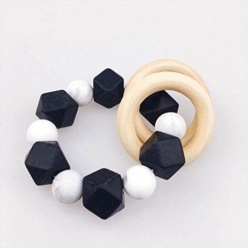 Mamimami Home 噛がため シリコーンブレスレット 食品グレード 歯固め おしゃぶり ガラガラ 赤ちゃんのおもちゃ ナチュラル チュアブル 木製リング [ホワイト]
