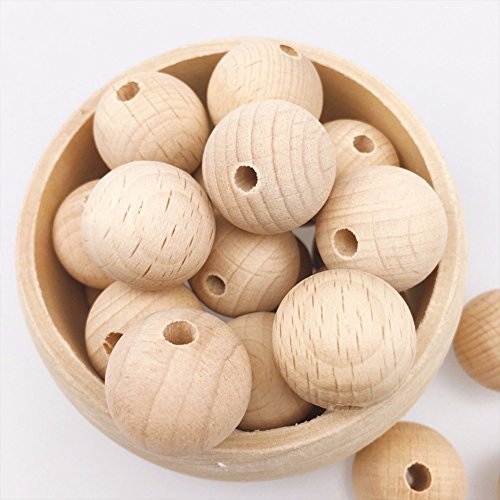 Mamimami Home 歯固め ラウンド ブナ木製ビーズ 染色なし 天然 安全 ビーズ DIY用 幼児玩具 ガラガラ 看護用 カミカミ おしゃぶりチェーン 噛がため 授乳ネックレス ビーズゼント 20MM 100個 [FDA認可済] 「BPAフリー」