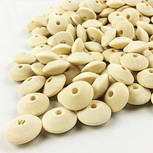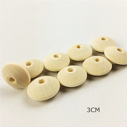 Mamimami Home 天然木製 チェコのビーズ 歯固め 算盤 ビーズ 30MM ヴィンテージチェコ バイコン ナチュラルカラー DIY用 赤ちゃん 知育玩具おしゃぶりチェーン 100個 [FDA認可済][BPAフリー]