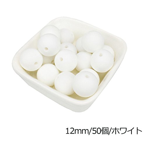 Mamimami Home シリコーン製 安全歯固め ビーズ 12MM/50個/ホワイト 授乳看護用 ネックレス おしゃぶりチェーン 幼児 噛がため玩具 新生児贈り物 DIY用 円形 アクセサリー[BPAフリー][FDA認可済]