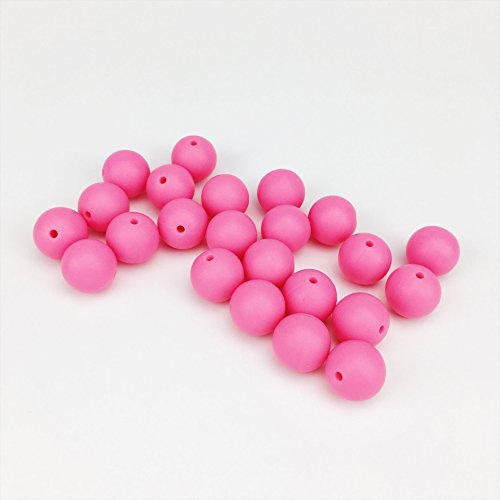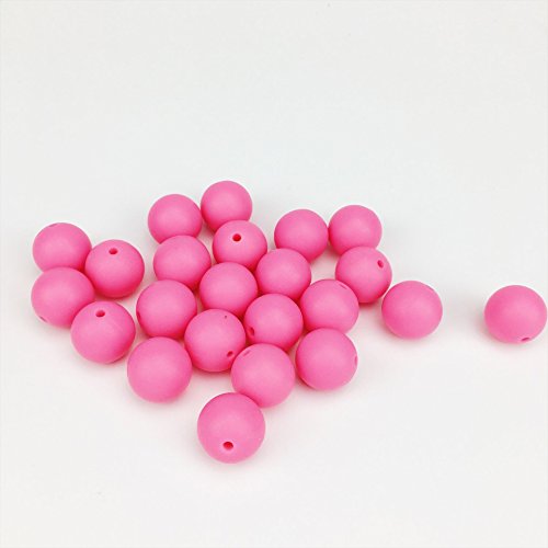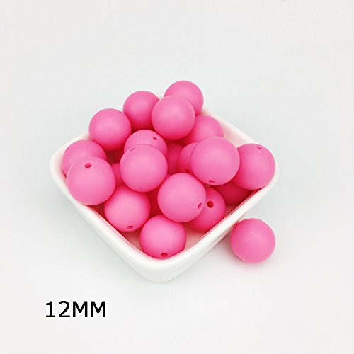 Mamimami Home シリコーン製 安全歯固め ビーズ 12MM 授乳看護用 ネックレス おしゃぶりチェーン 幼児 噛がため玩具 新生児贈り物 DIY用 円形 アクセサリー 17色選択可能 50個・ホトピンク [BPAフリー][FDA認可済]