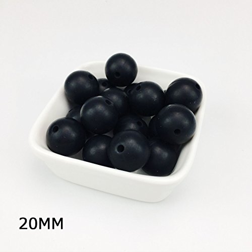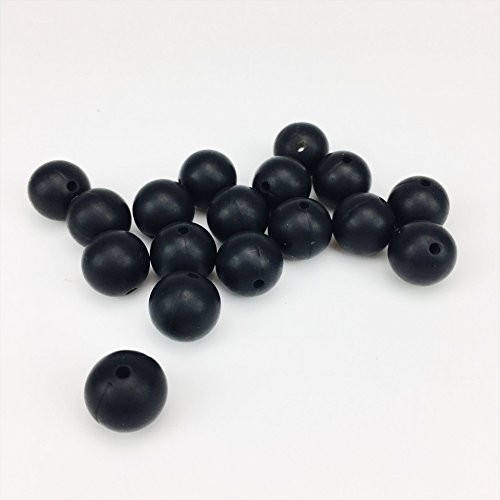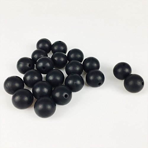 Mamimami Home シリコーン製 安全歯固め ビーズ 20MM 授乳看護用 ネックレス おしゃぶりチェーン 幼児 噛がため玩具 新生児贈り物 DIY用 円形 アクセサリー 17色選択可能 50個・ブラック [BPAフリー][FDA認可済]