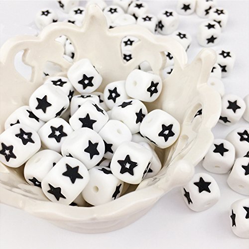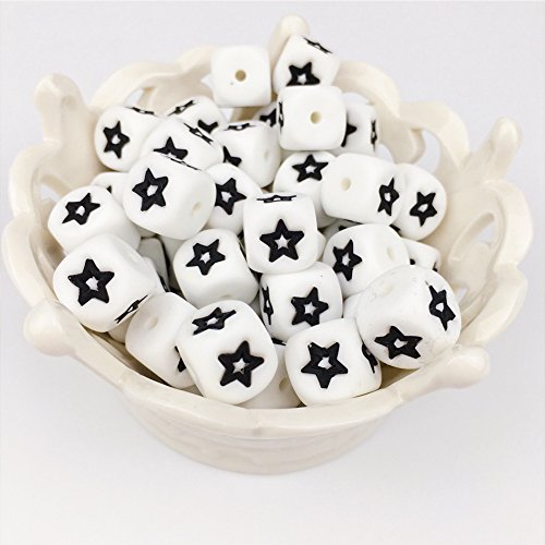 Mamimami Home 12MM 立方体 シリコーンビーズ 安全 歯固め カミカミ チュアブル DIY ビーズ 噛がため ブレスレット 授乳用ペンダント おしゃぶりチェーン 赤ちゃん贈り物 中空星・20個 [BPAフリー][FDA認可済]